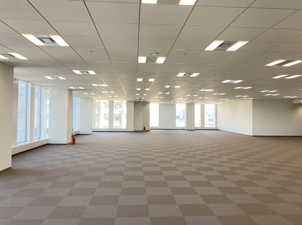 大型居抜き・セットアップ区画では、複数部署やコラボレーションスペースにも対応できる自由なレイアウトが魅力です。居抜き・セットアップオフィスを利用すれば、コストを抑えながらも高機能な執務環境を構築可能です。