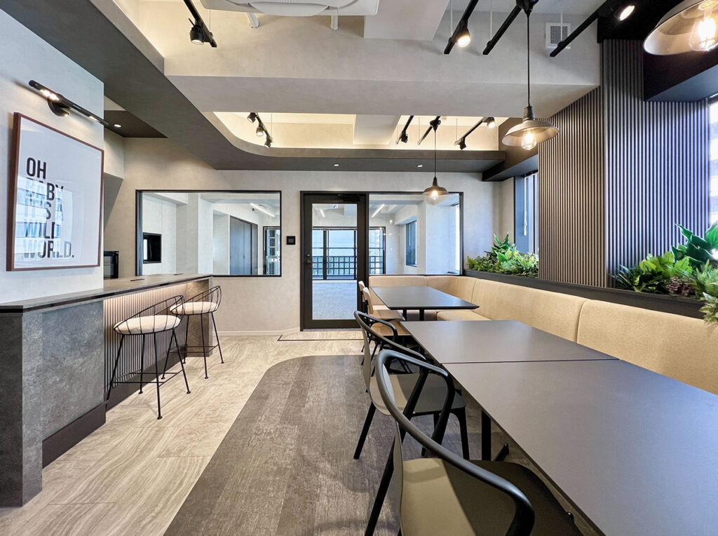 チーム会議・個人作業・リフレッシュタイムまで幅広く対応できる空間です。