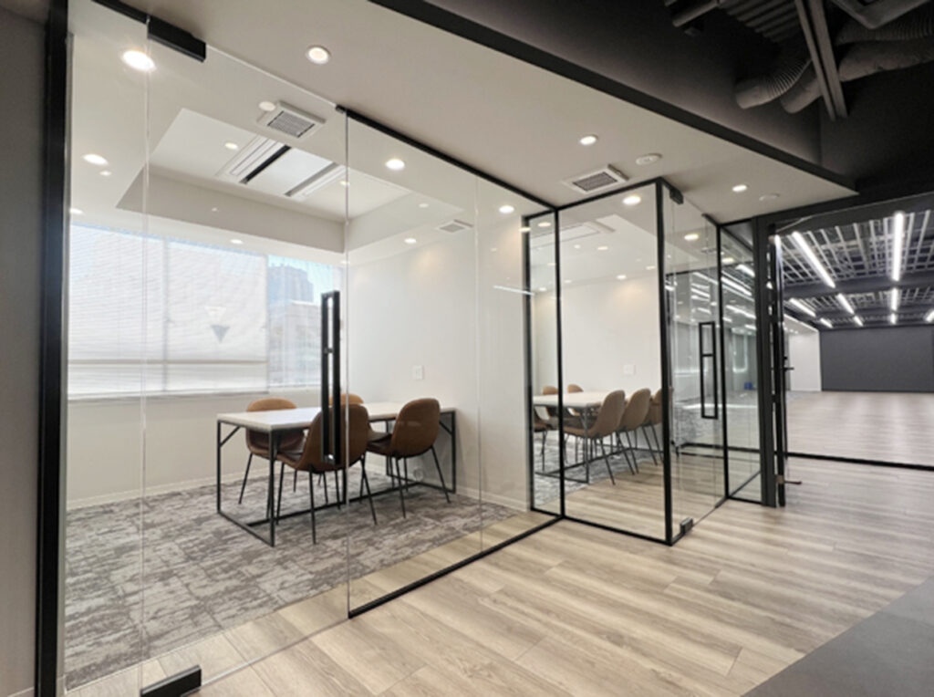 ガラスパーテーションや木目調フロア、間接照明などが施されたおしゃれオフィスも人気上昇中です。内装デザインの初期投資が不要で、「映える」空間をそのまま活用できるので、来客時の印象アップにもつながります!