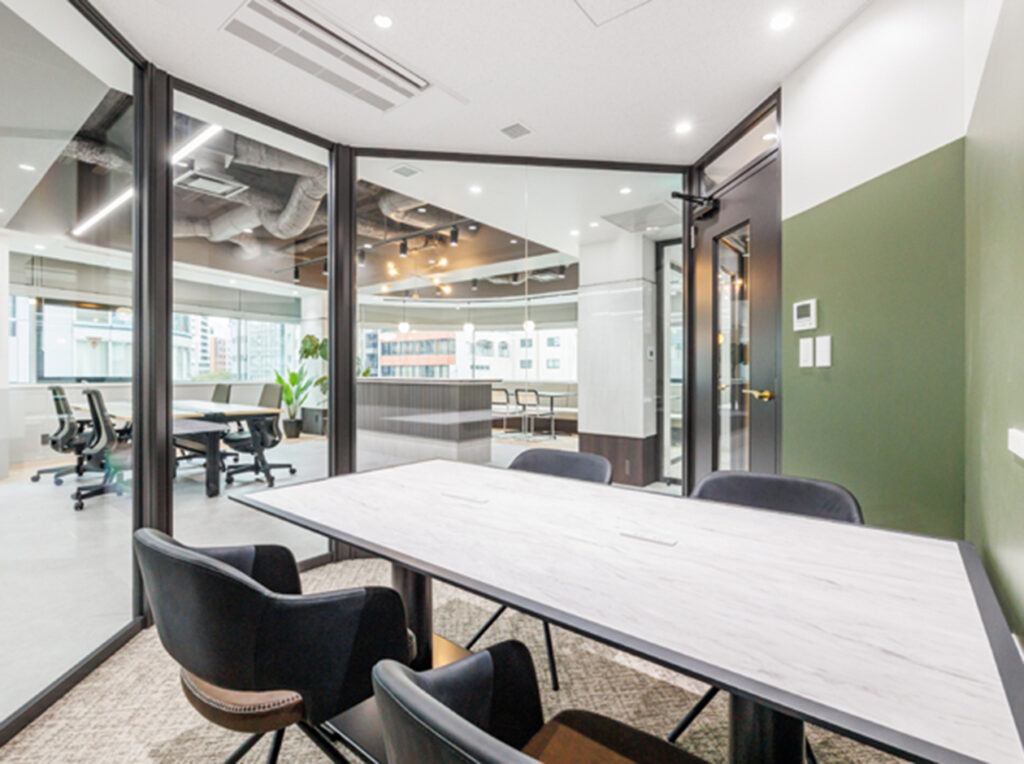 貸室内には【6名用会議室×1室】【個室ブース×2室】を備え、