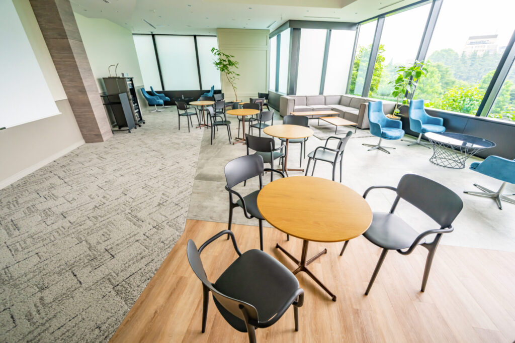例えば、長時間のPC作業でも目に負担が少ない柔らかな自然光、暑すぎず寒すぎない温度差の少ない空調、周囲の会話が気にならない高い防音性など。こうした要素が揃っていると、社員は無意識のうちにストレスを減らすことができ、1日のパフォーマンスが大きく変わります。